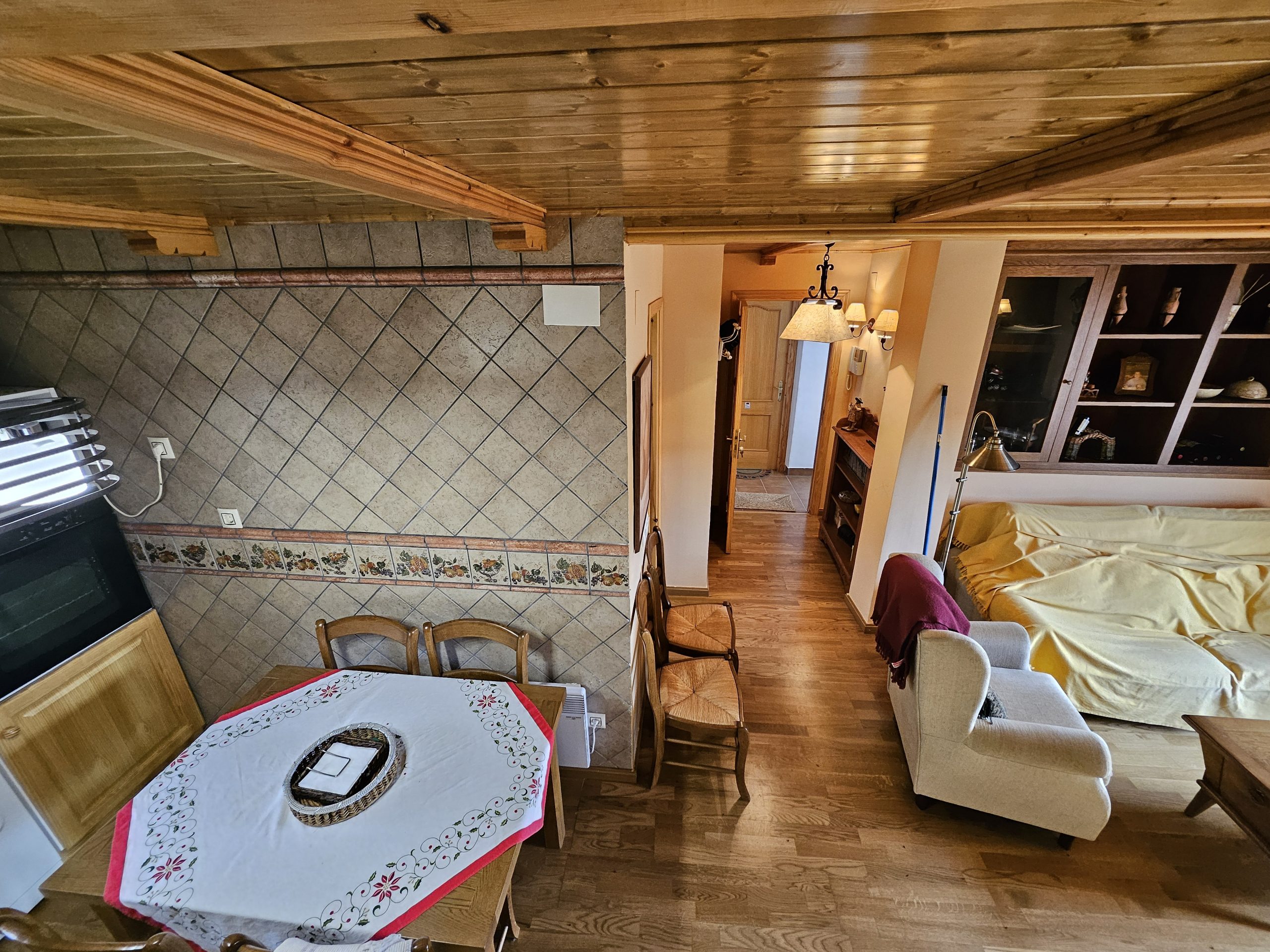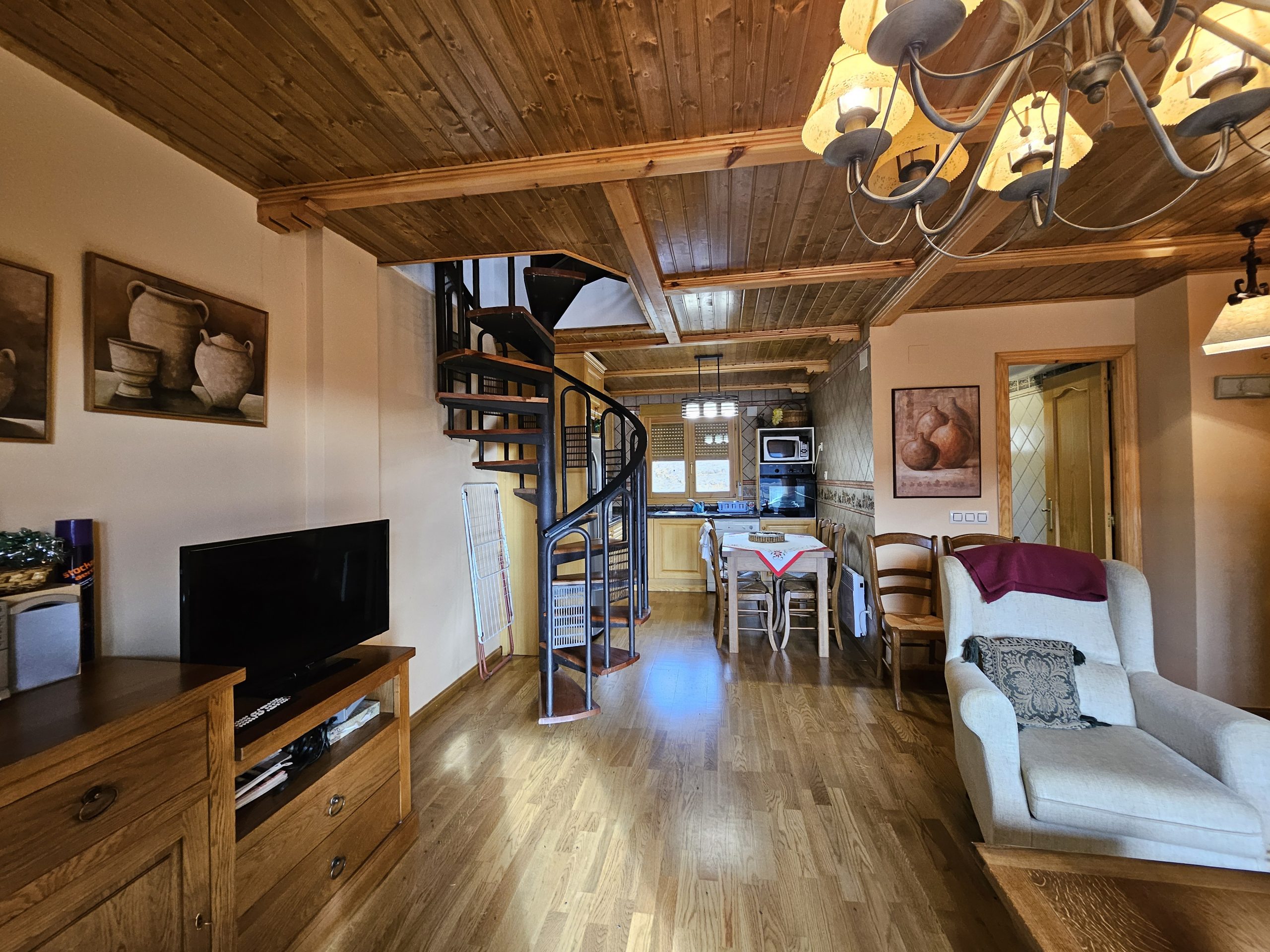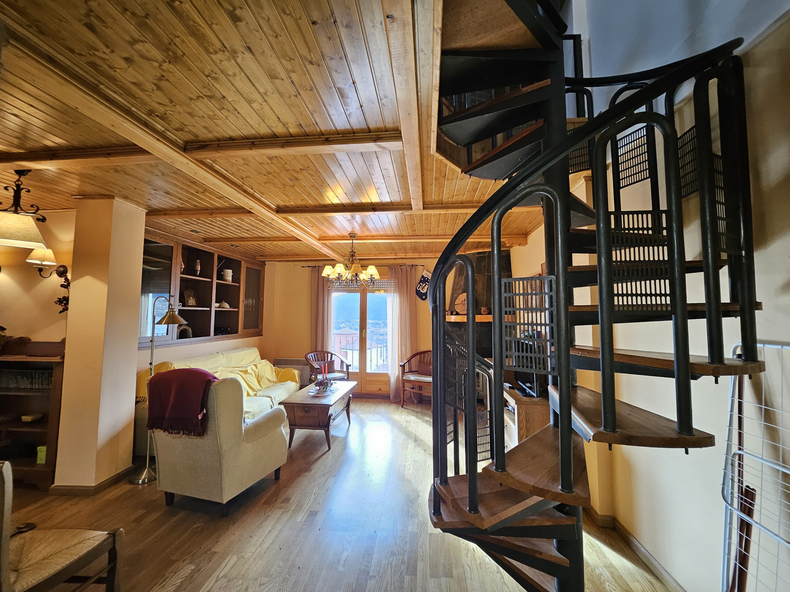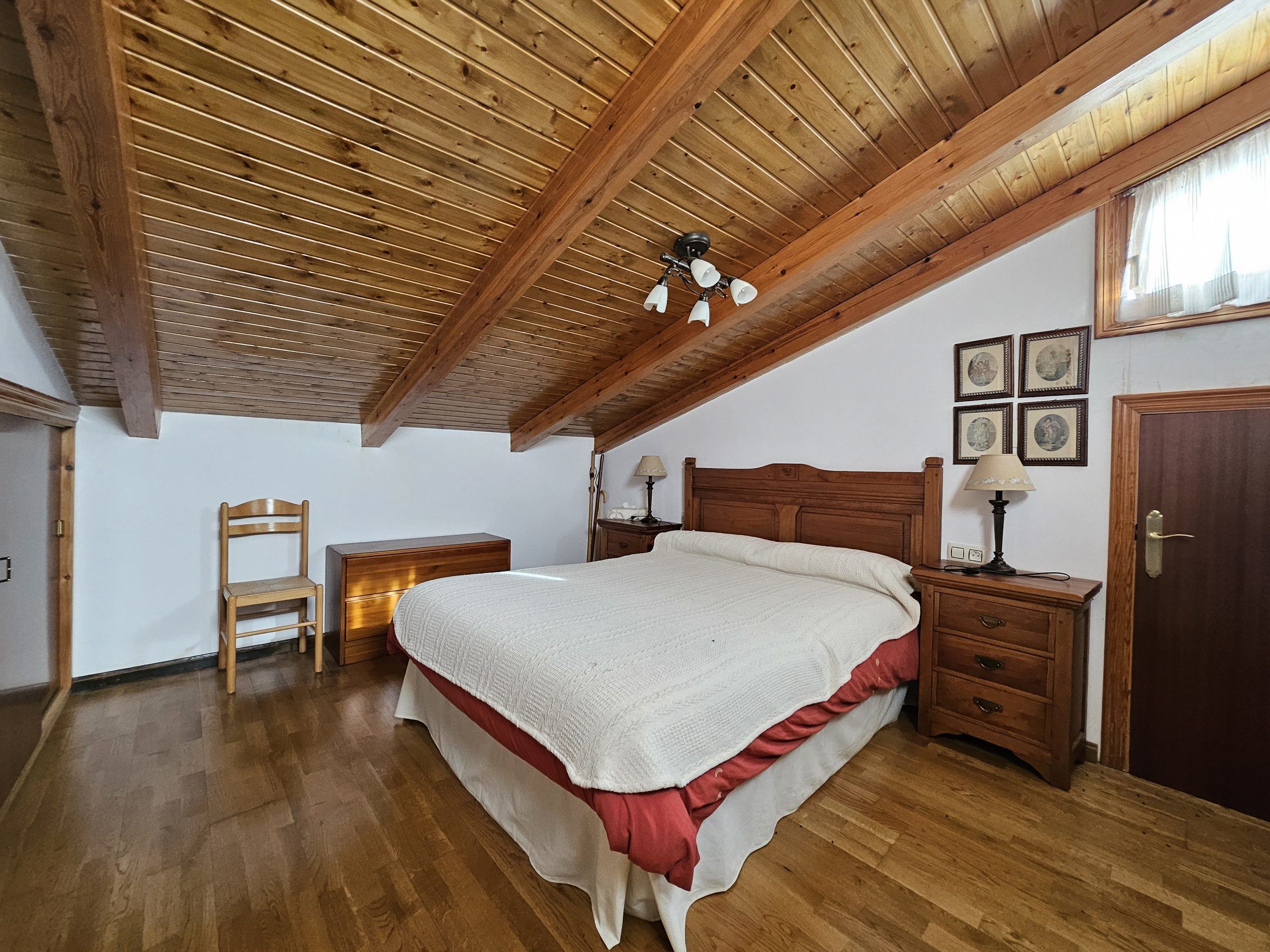 Suelos en parquet, techos en madera, ventanas climalit.