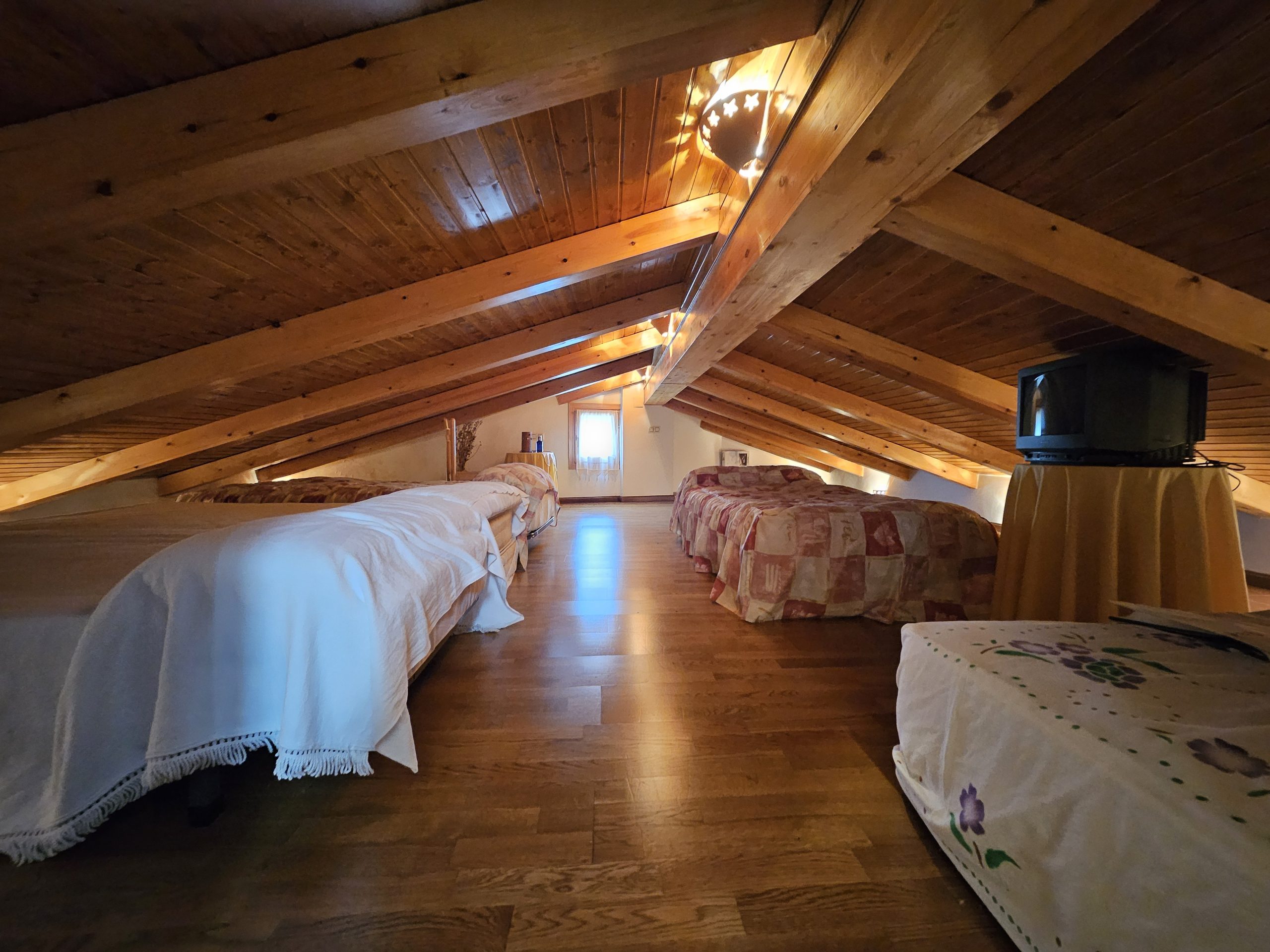Desde ella se accede a una buhardilla diafana con luz natural y espacio suficiente para cuatro camas.