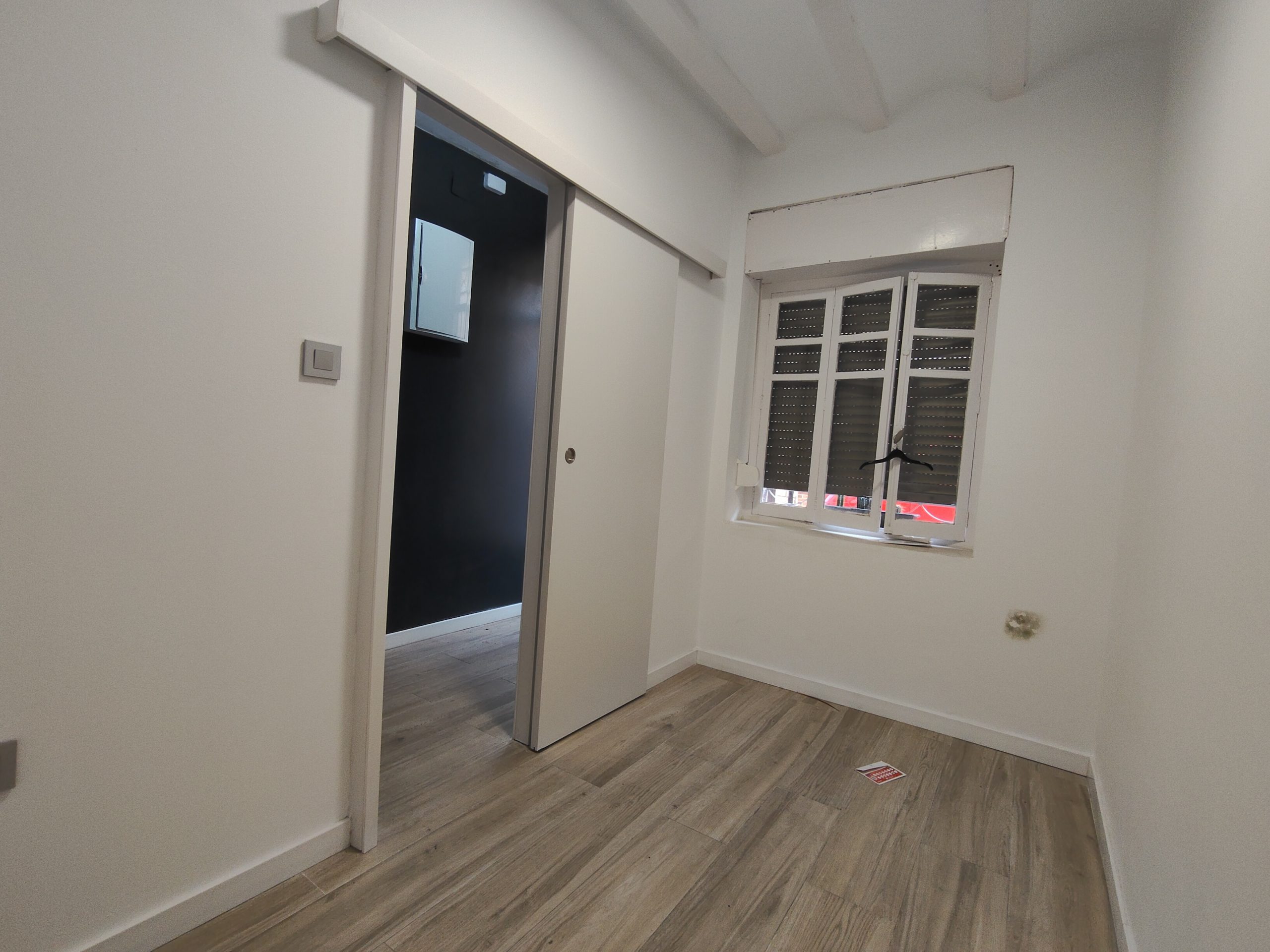 Planta principal salón, comedor y cocina abiertos en zona de paso, la planta tiene una habitación individual y un patio cerrado iluminado por una claraboya con apertura para la ventilación.