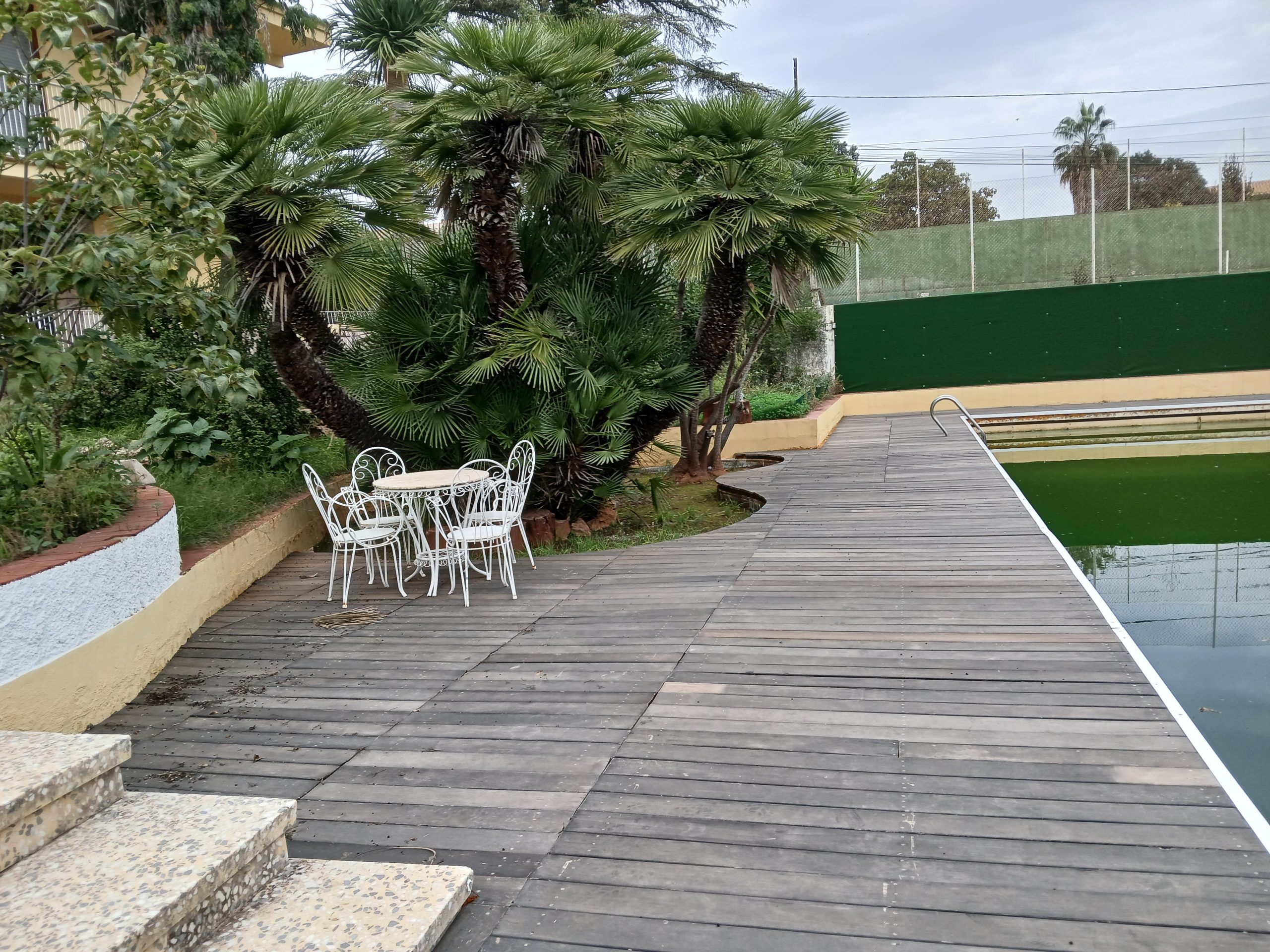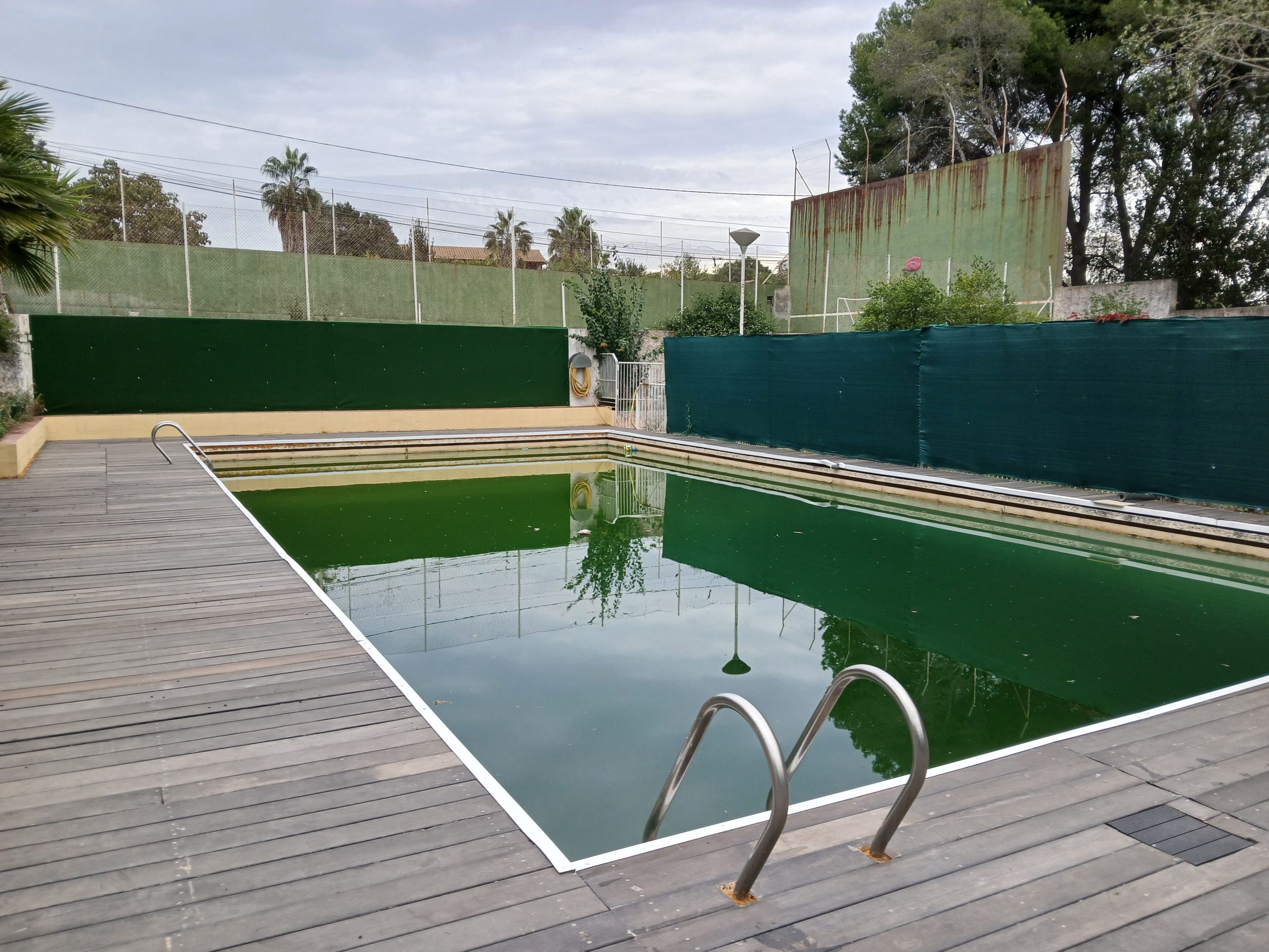 Piscina, frontenis y zona de parking