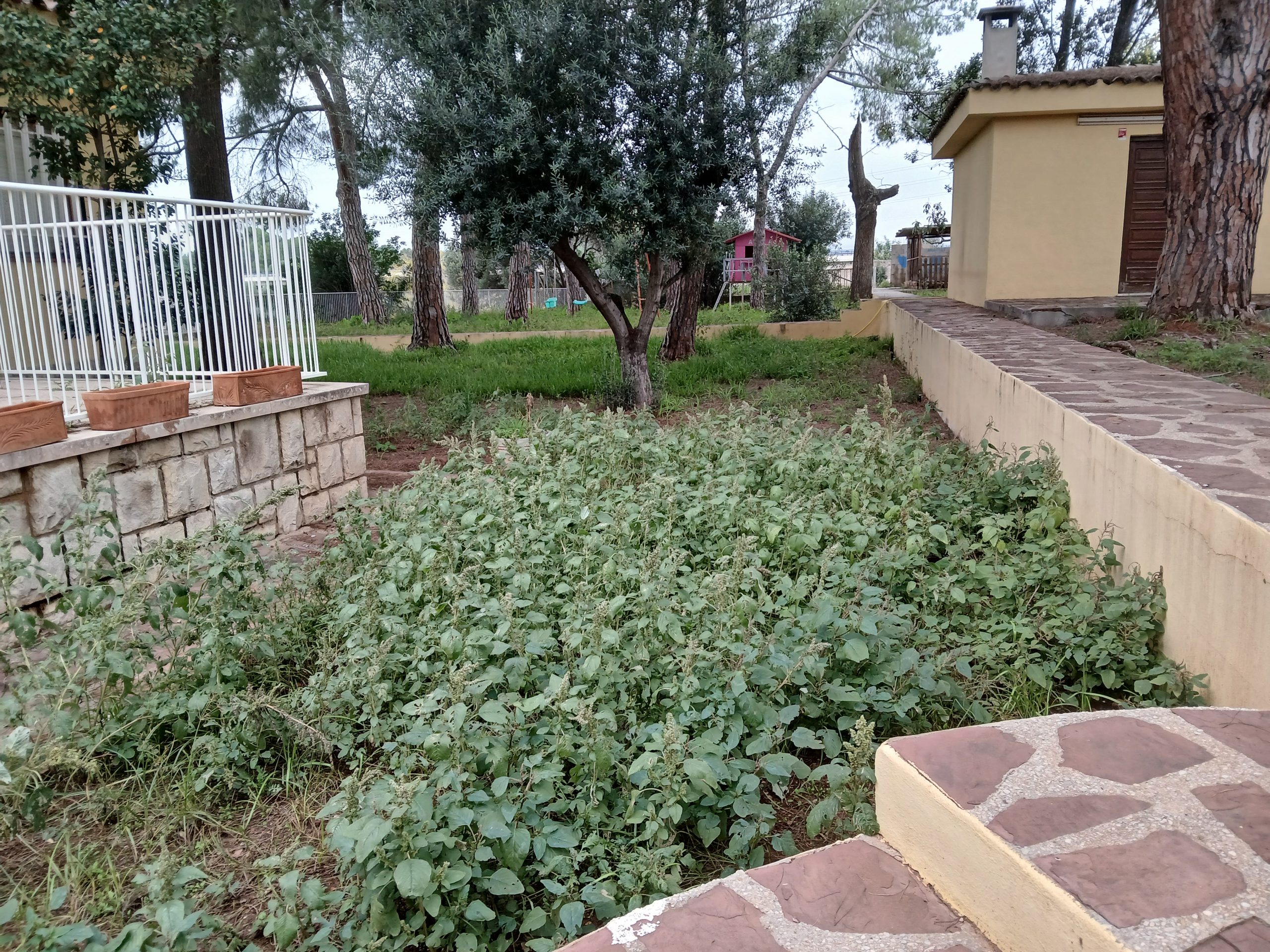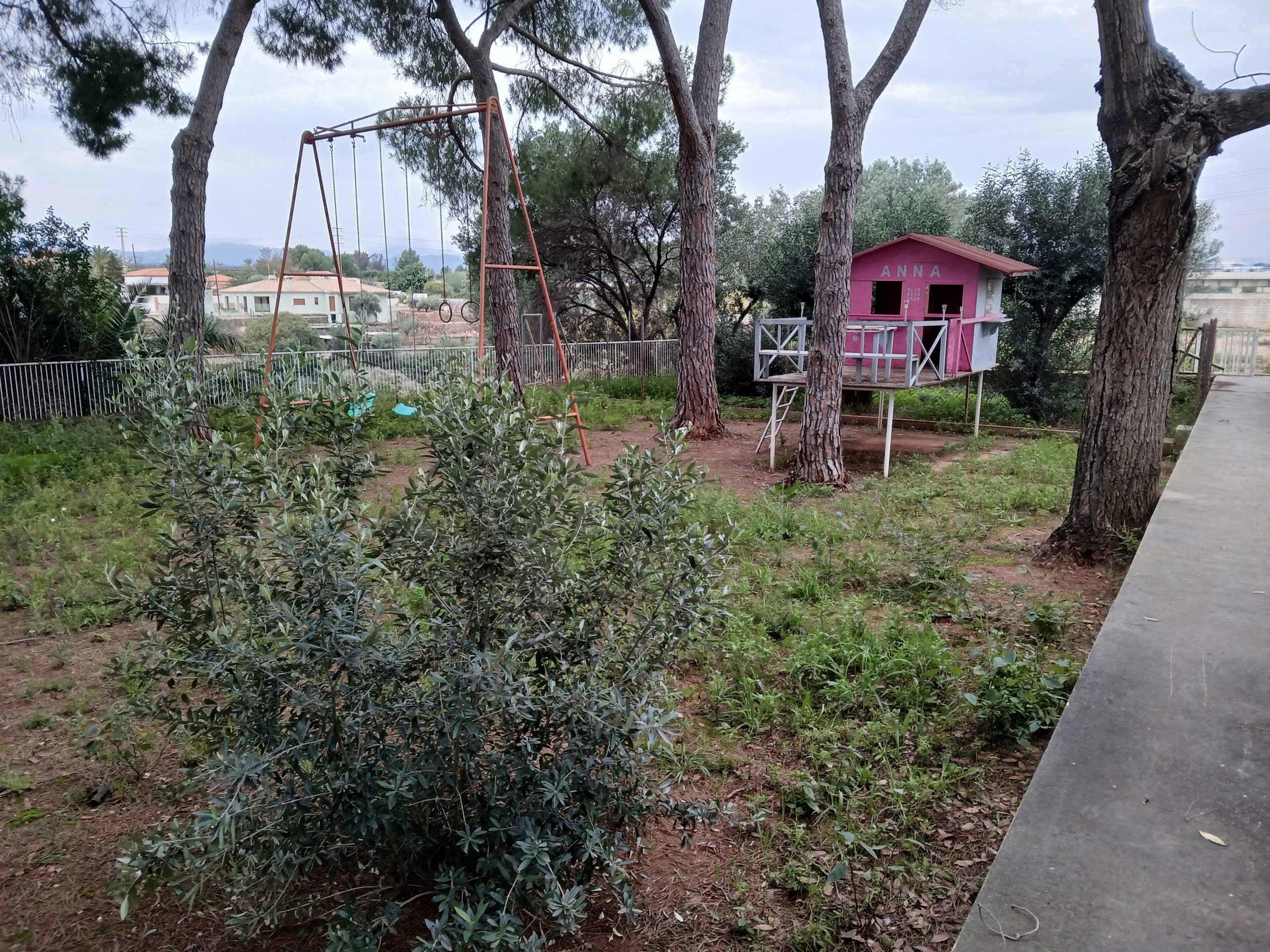 Amplio jardín con zona infantil y huerto.
