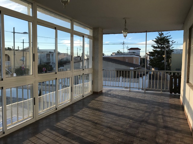 Entrada a la vivienda desde una gran terraza semiacristalada.