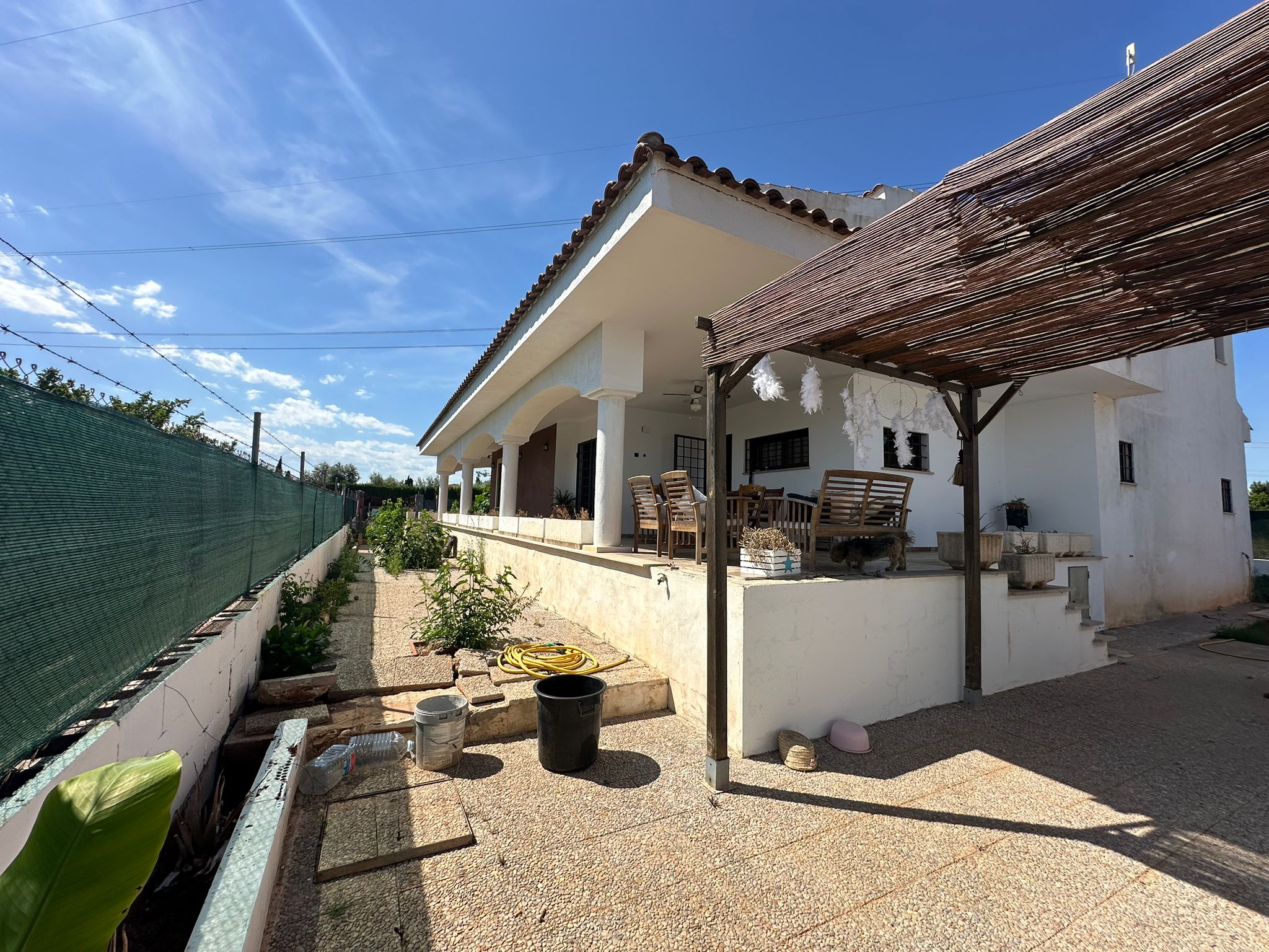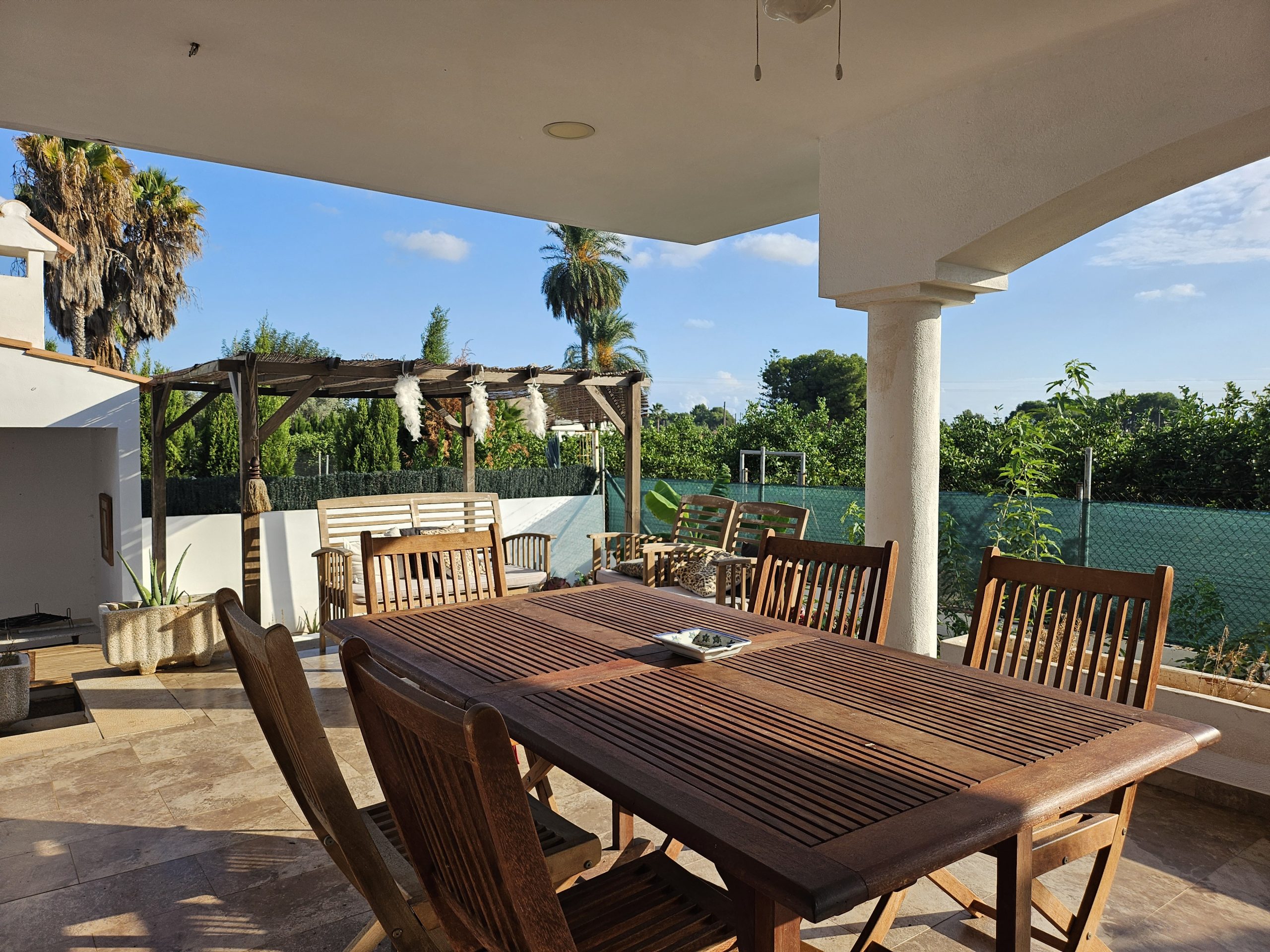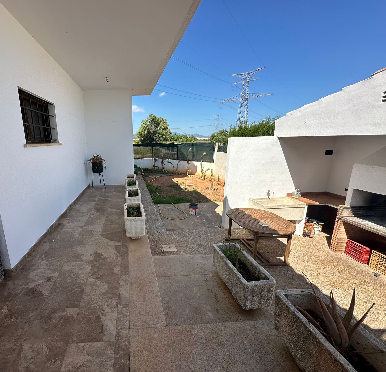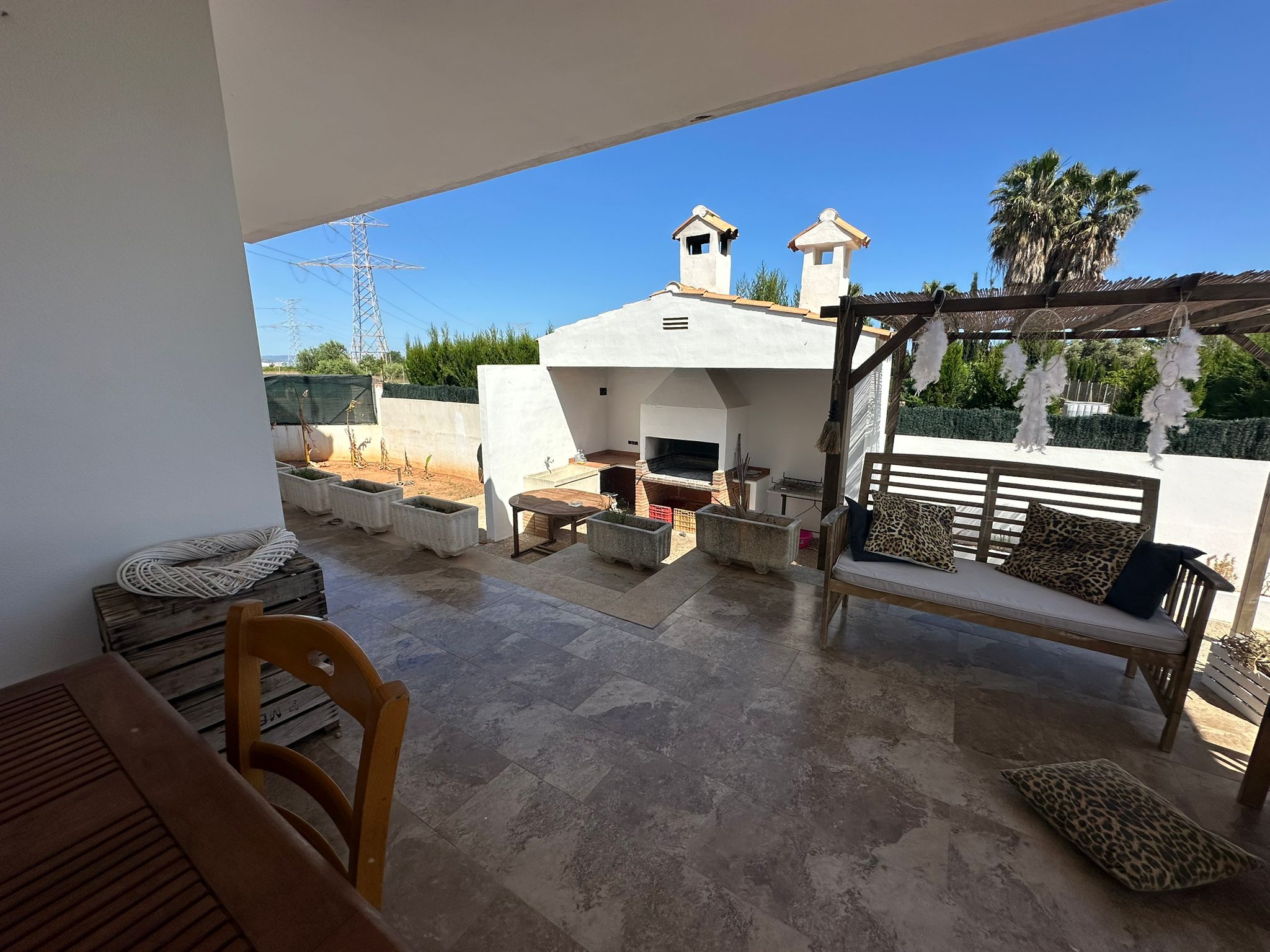 Las dos terrazas de la primera planta rodean a la vivienda y junto a la lateral se encuentra el paellero barbacoa y cerca de este, un espacio suficiente para la futura piscina si se desea.