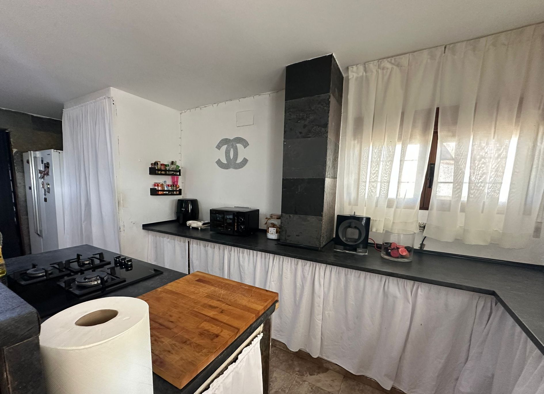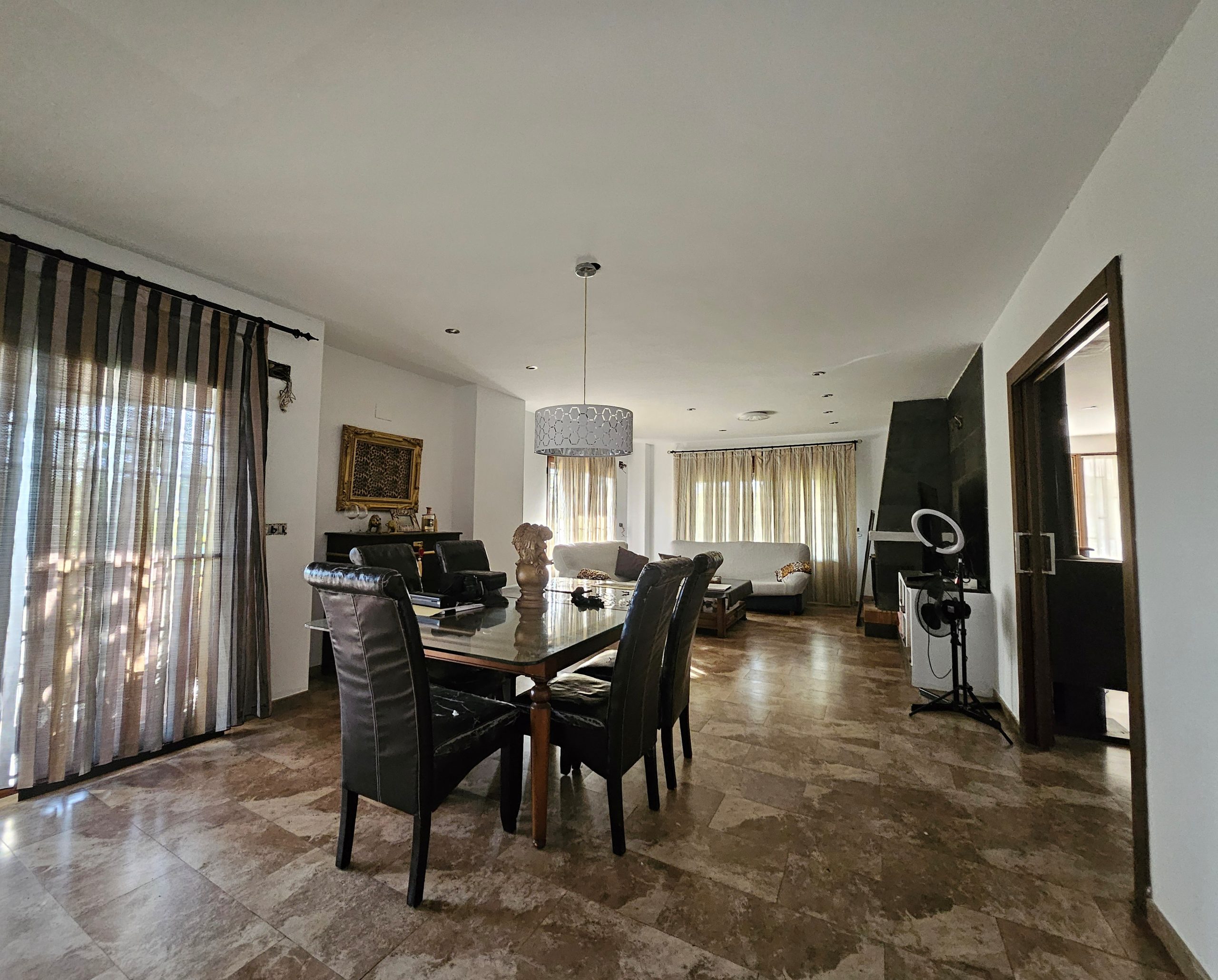 Tenemos un gran salón comedor con chimenea, esquinero y muy luminoso gracias a las grandes ventanas y a la puerta con salida a una terraza lateral.