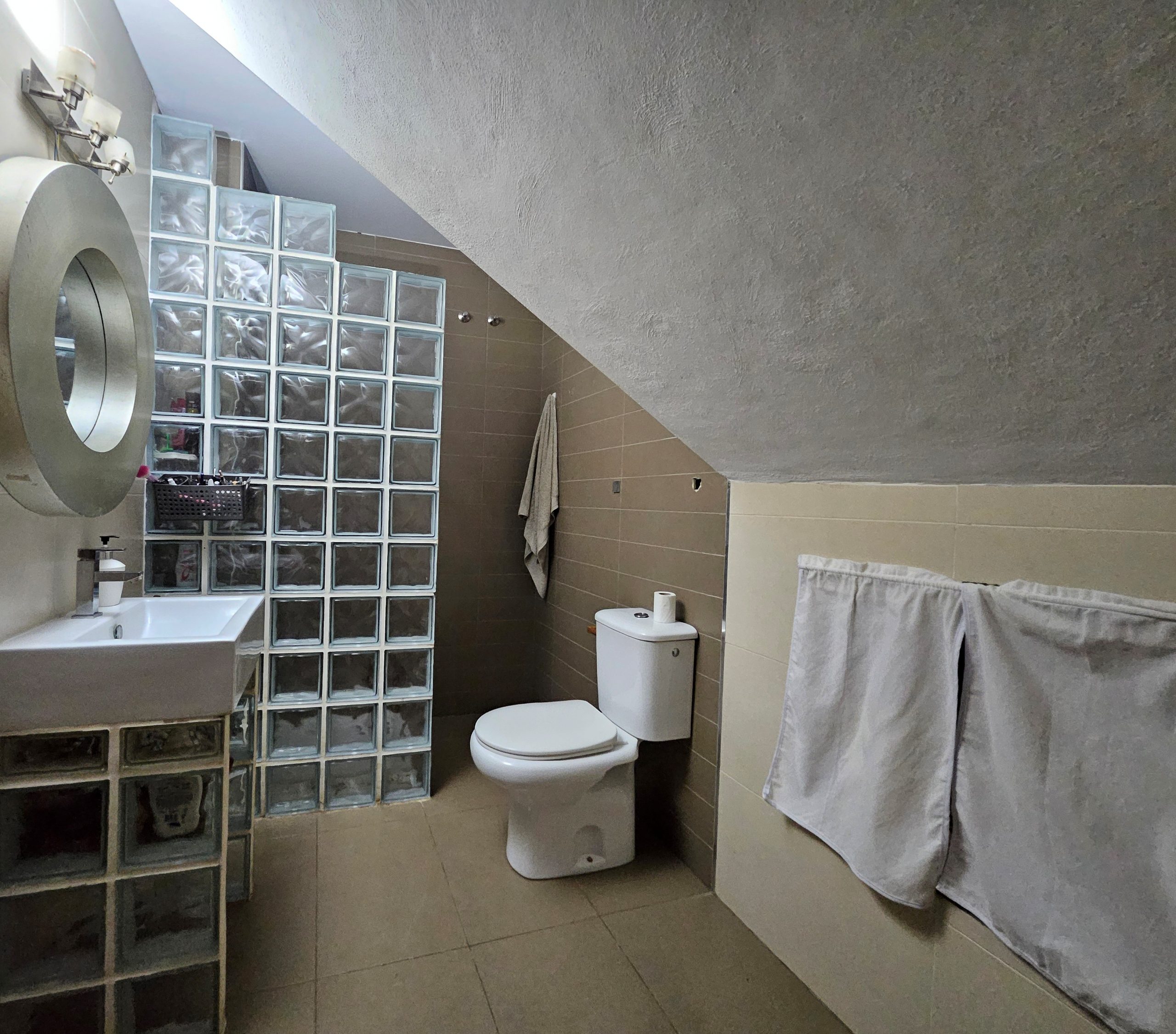 En la planta superior tenemos tres habitaciones, todas grandes estancias con vestidor, un baño completo con ducha y bañera de hidromasaje y una terraza con vistas despejadas en la que destaca otra estancia multiusos, abuhardillada y con mucha luz.