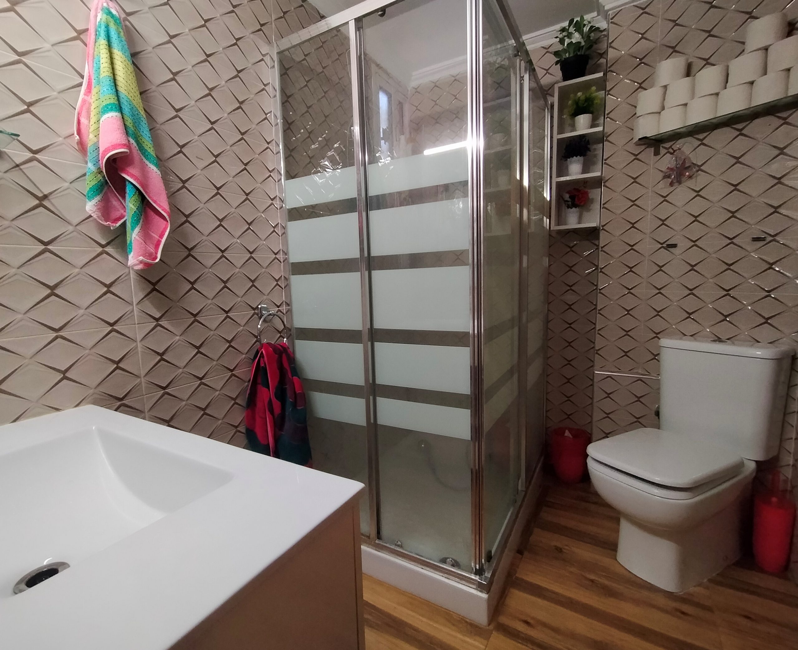 La vivienda cuenta con un baño con ducha y un aseo, además cuenta también con una amplia galería lavadero y zona de almacenaje.