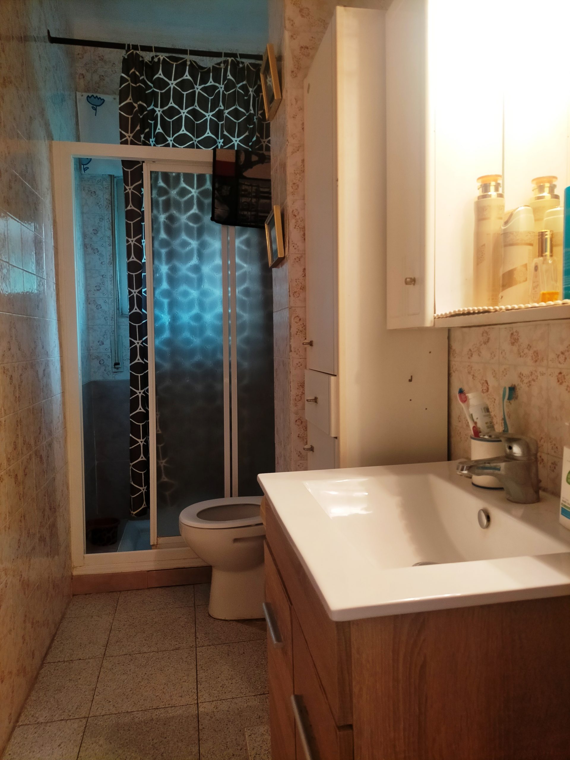 Tres habitaciones, la principal y dos individuales. Un baño con ducha y luz natural.