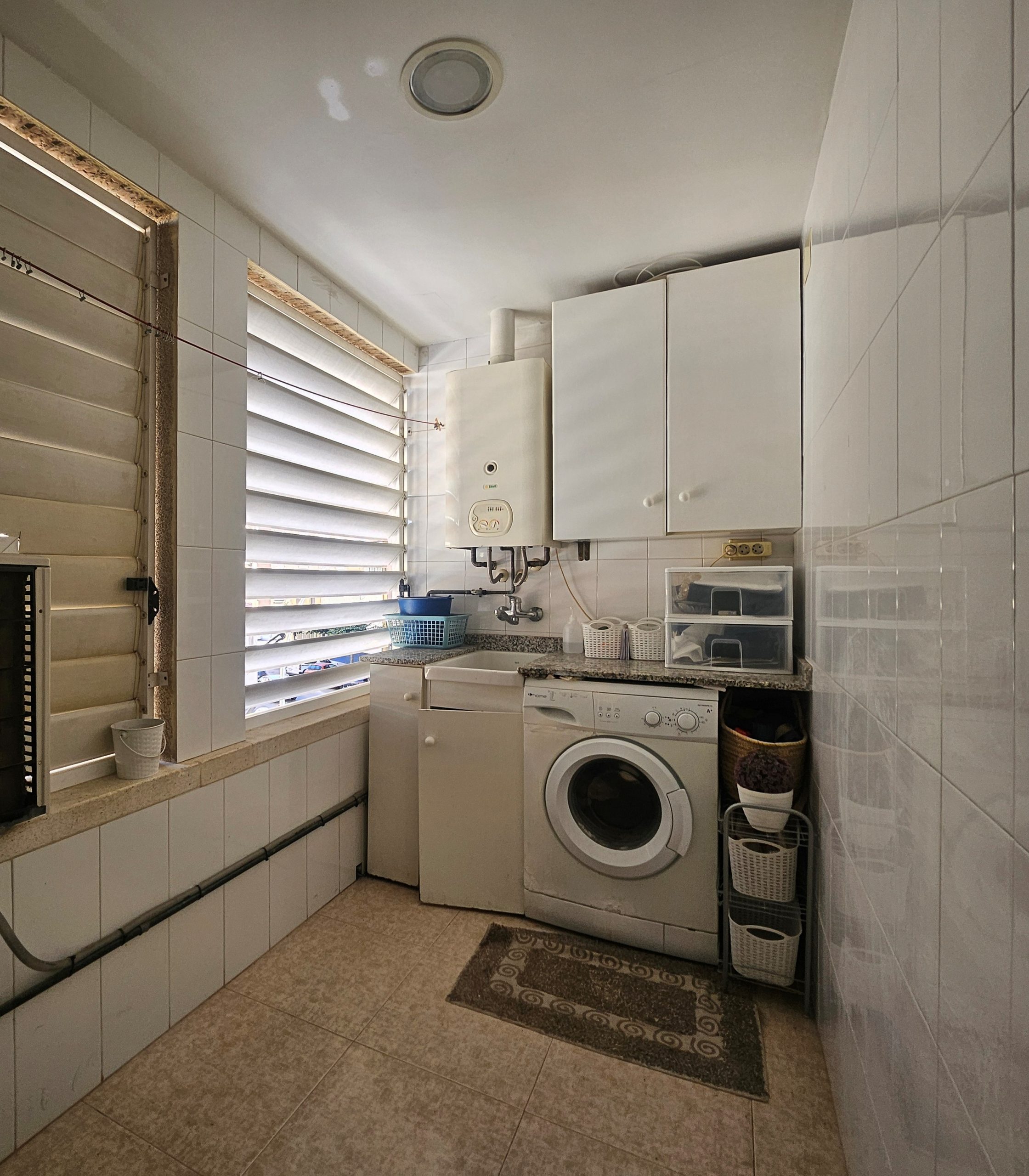 Tenemos un estupendo, amplio y luminoso salón comedor, esquinero, con chimenea y con aire acondicionado. Junto a salón, una cocina office independiente con una amplia galería lavadero.