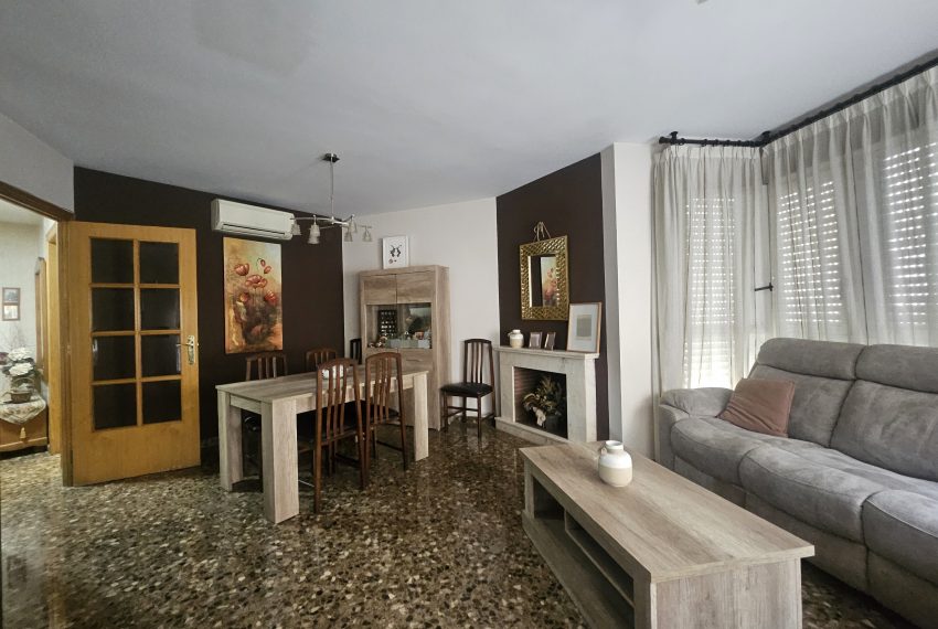 Salón comedor muy luminoso con chimenea y un espacioso balcón con vistas despejadas.